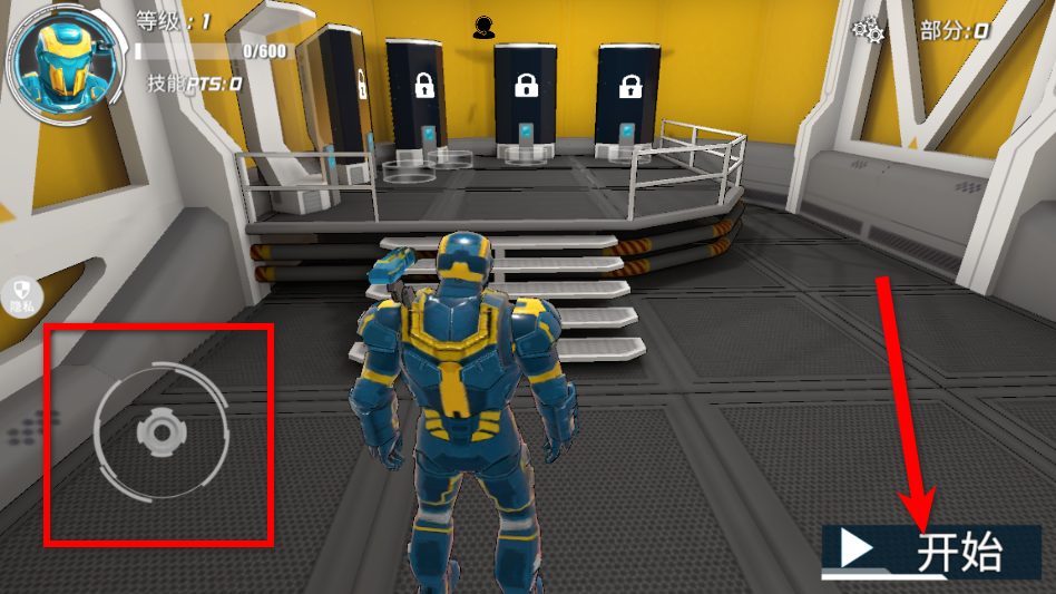 3、左下角可以控制机器人的移动,点击右下角开始。
