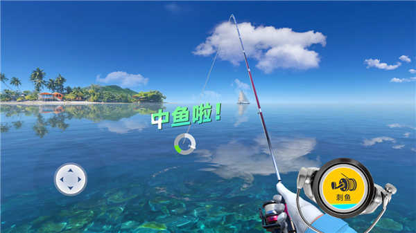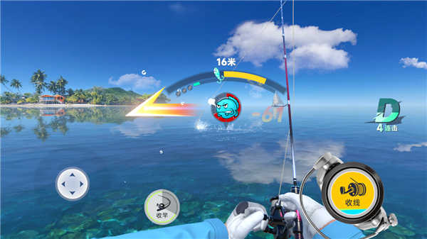 6、中鱼后根据鱼的反方向移动左下角的方向键,同时按收线在黄色的区域中,不要超过否则容易断线。
