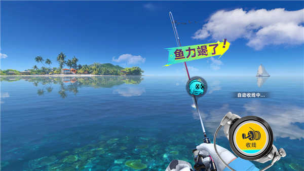 7、通过不断以上操作消耗鱼的力气,最终鱼没力即可自动收线。