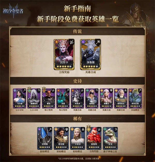 在新手阶段可以免费获得的英雄有以上这些。