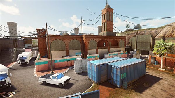 这张地图是坐落于两个国家边境间,孤立且暗藏杀机的哨站。沙漠山丘包围着四周,参杂着新、旧建筑,且具有多处开放空间。 这是最开放、可破坏性最高的地图之一,因此在这移动非常危险,行动时必须谨慎。