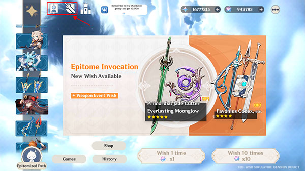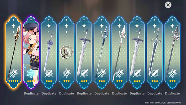wish impact抽卡模拟器部分角色、武器图片开箱展示