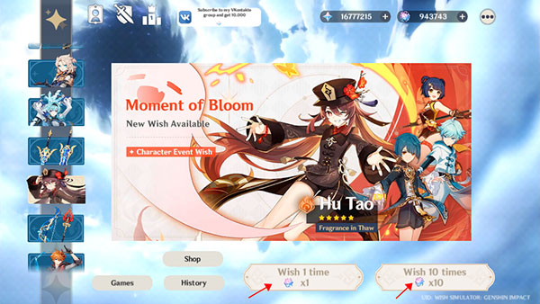 1、打开Wish Impact,进入游戏主界面,游戏模拟了原神单抽和十连两种抽卡方式,