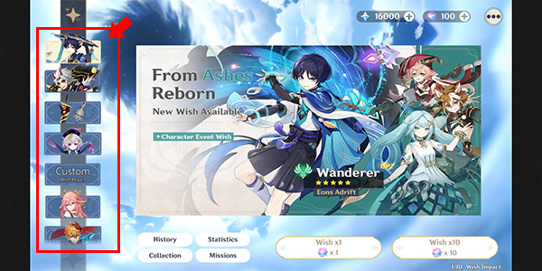 2、之后来到卡池抽卡界面,在左侧选择想要抽取的卡池