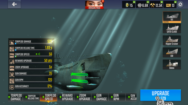 3、解锁的船只,我们还可以升级它的各项属性,提升你的战斗体验。
