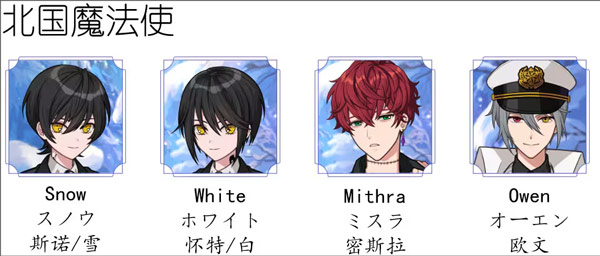 2、北之国魔法使:斯诺、怀特、密斯拉、欧文