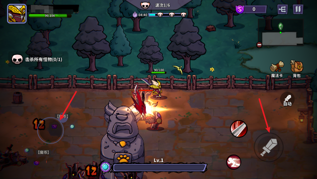 1、游戏中拖动左侧摇杆进行移动,靠近怪物后即可战斗。