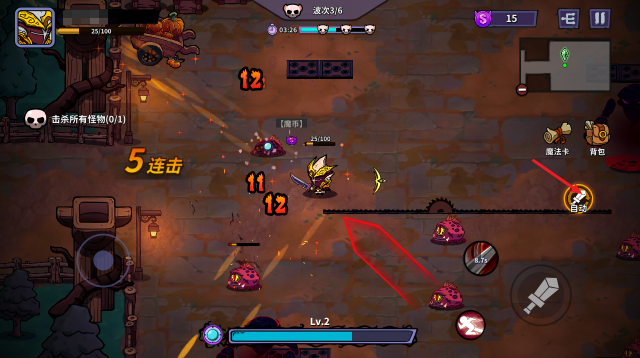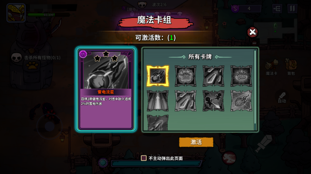2、消灭敌人可以获得经验,升级后就能解锁魔法卡。