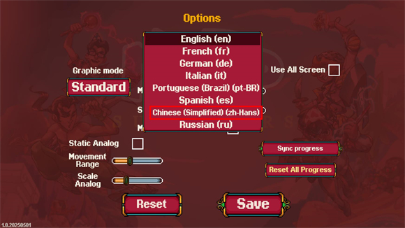 3、最后选择Chinese选项就可以将游戏设置成中文版。