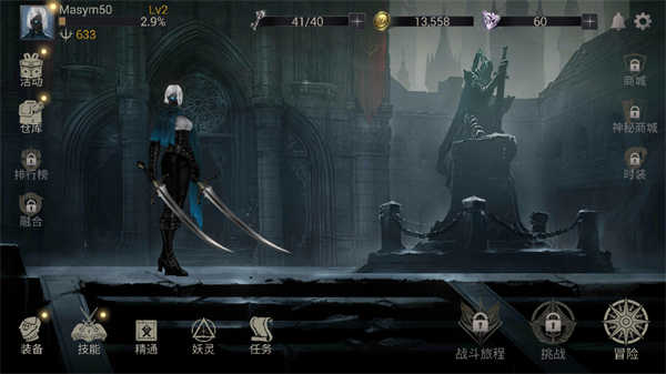 1、创建好角色之后,点击主界面的冒险;
