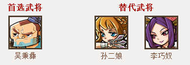 吴秉彝(首选武将),孙二娘、李巧奴(替代武将)
