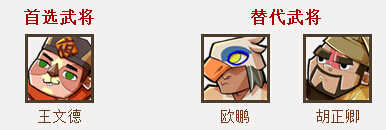 王文德(首选武将),欧鹏、胡正卿(替代武将)