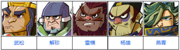 燕青(首选武将),史进、鲍旭、朱贵(替代武将)