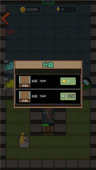 1、游戏类似于躺平发育的元素,玩家需要不断地升级武器进行战斗