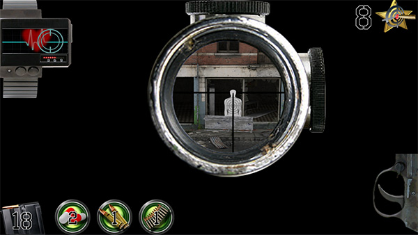 3、移动瞄准镜,瞄准靶子,然后点击右下角的扳机。