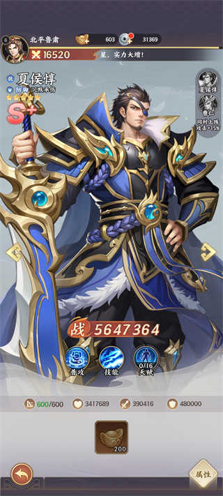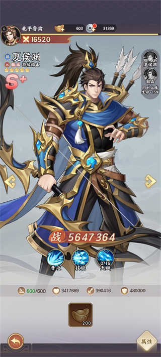 4、夏侯渊(前排输出|爆发+流血)单次爆发高达165%兵刃伤害,35%概率施加“流血”(每回合35%真实伤害,持续2回合),兼具瞬时压制与持续压血线能力,是攻坚前排的首选利器。