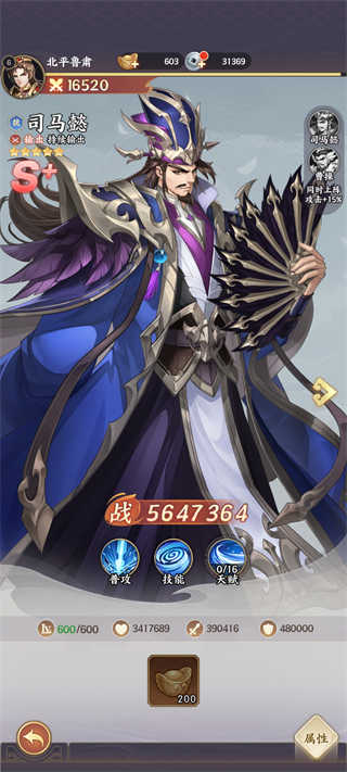 8、司马懿(群体持续|DeBuff联动)全体法伤+50%概率挂“鹰视狼顾”,目标受直接伤害时额外叠加5%司马懿攻击的法伤(可叠加,持续3回合),与多段伤害队友(如夏侯渊、张辽)配合,输出呈指数级增长。