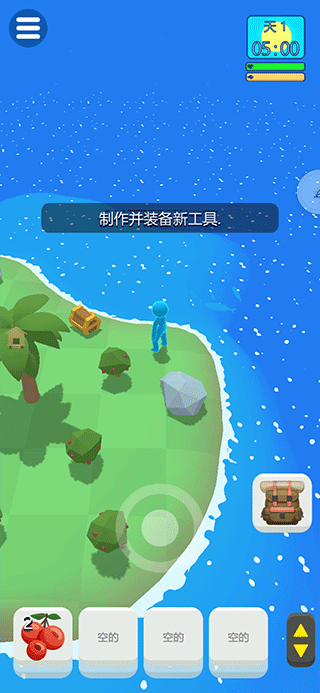 这款游戏的生存玩法自由度颇高,不同区域分布着独特资源,你可以尽情收集,还能前往更遥远的区域探索,通过生产与建设维持自身活力,在荒岛上挑战更长久的生存时长。游戏是有可爱的卡通氛围很浓,这个是会极大的促进了大家的沉浸感。精美的画面风格和生动的音效营造出独特的游戏氛围,让玩家仿佛真的置身于这座神秘的孤岛上。角色动作流畅自然,环境细节丰富。游戏内会让自己活得充实,这样玩家才能创造更多的价值,找到更多的素材。通过合理安排时间,你可以同时进行多项活动,比如白天外出采集,晚上在庇护所加工材料。高效的时间管理是长期生存的关键。