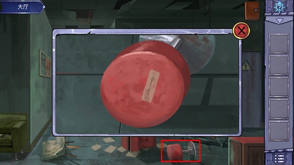 9、查看地面上的椅子进入特写镜头,之后将胶带撕开,多次点击裂缝,从里面得到钥匙。