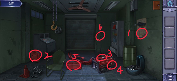 基本每个场景都会清空道具和谜题,很少有跨场景的谜题,场景首图上会用红圈,把可互动物品圈起来并编号(前几个场景编号有点混乱,之后基本是按操作顺序编号的)