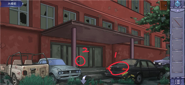 8、点击大楼的如图所示位置,进入特写镜头。对门锁使用钳子,门被打开,进入大厅。