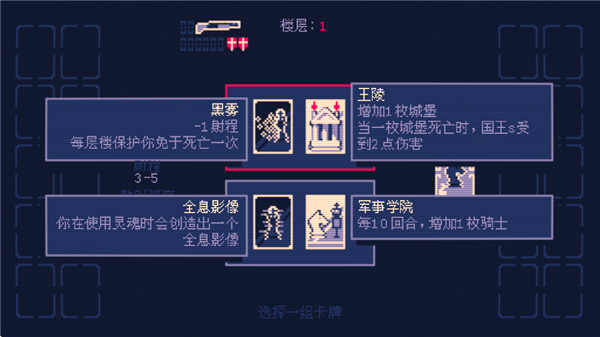 3、随机升级:在每一层结束后,你可以从两组随机的组合中选择一项升级,让你和敌方都获得一种增益效果。做出明智的选择,突破更多的楼层,争取夺回你的王国。