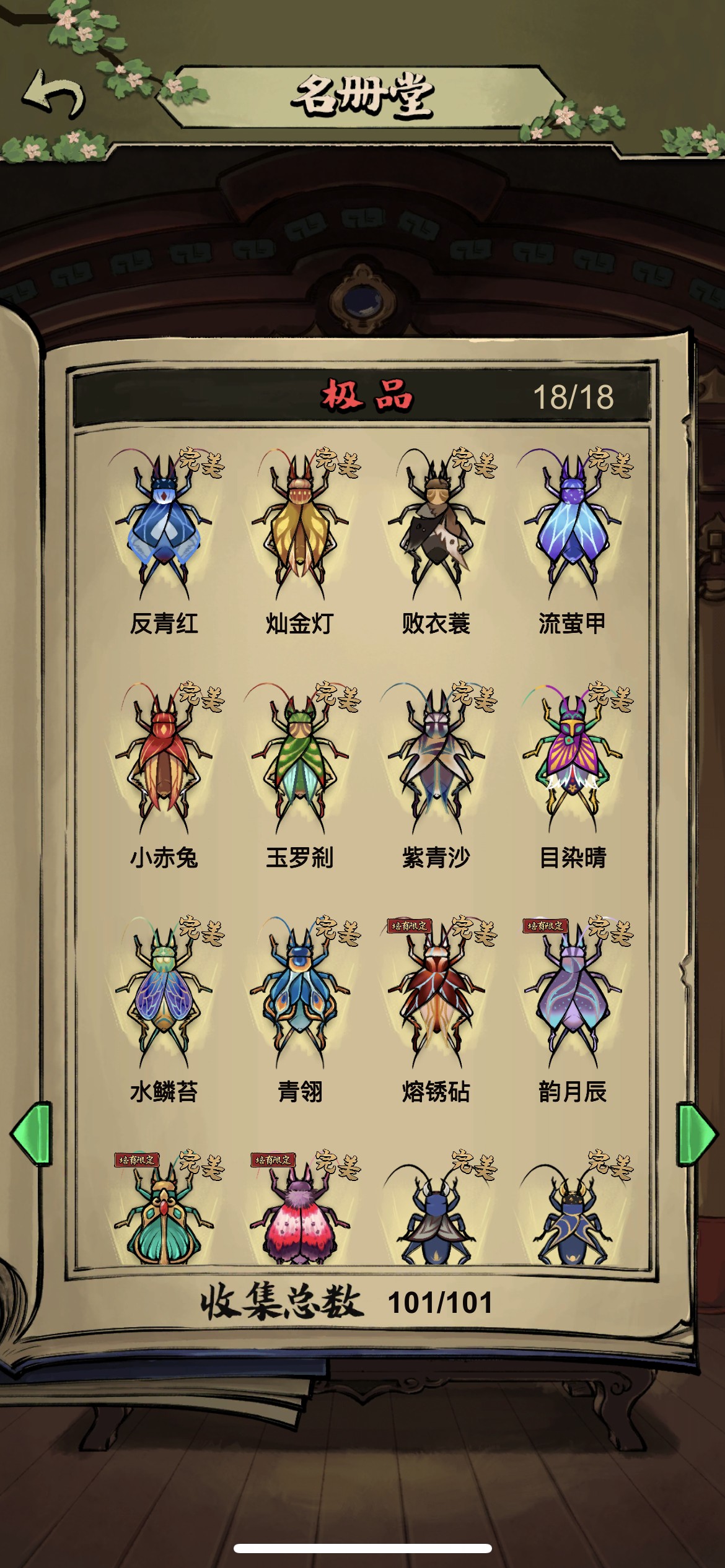 2、享受抓蛐蛐,开图鉴的过程,这里不建议在野外刻意抓神品,浪费很多时间。神品除了白虎和玄武,都可以培育的。培育屋,除了荒野(培育速度减半那个)的词条,其他都是没用的,时间就是金钱,荒野培育出好东西的概率都是一样的,而且时间减半。