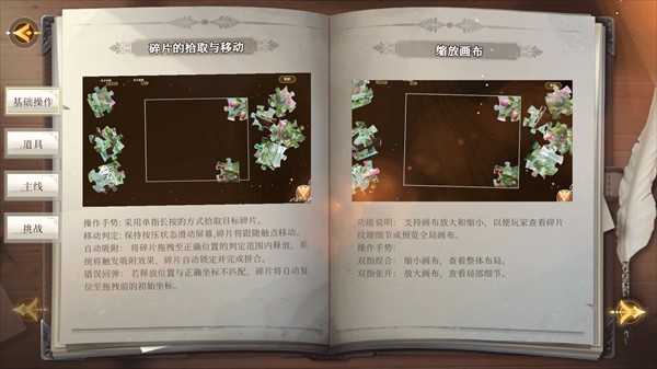 画布缩放:双指捏合缩小画布,便于观察整体布局;双指张开放大画布,可精准查看碎片纹理细节,提升拼合效率。