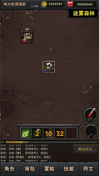 进入游戏后,需要手动选择地图进行挂机打野。具体操作是点击下方的“战斗”选项,然后选择“迷雾森林”地图,在该地图中通过砍杀鸡和猪来升级,直到角色达到10级。在升级的过程中,同时也要收集一些基础装备来提升自身实力。当角色等级达到5级时,前往第二个地图,在那里获取10级装备,这样等角色升到10级时就能直接穿戴,为挑战第一个地图的隐藏地图做好准备。