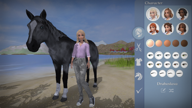 1、开局我们可以创建自己的角色,自由的设计角色和马匹的样子。