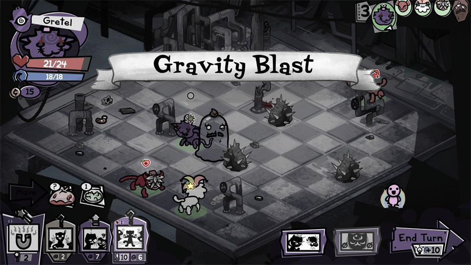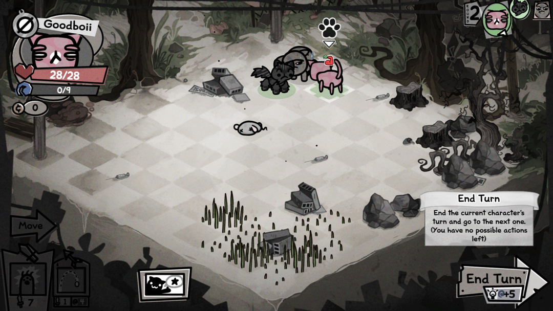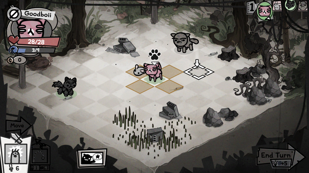3、游戏采用回合制战术玩法,玩家需通过点击来让小猫进行移动和攻击。
