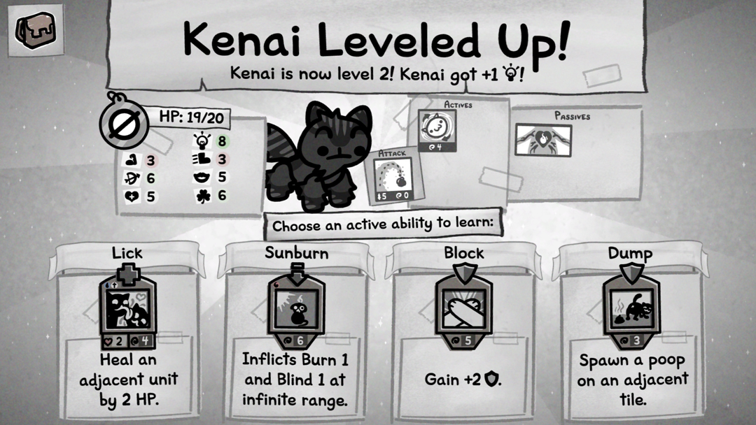 5、最后成功击败关卡内所有敌人即可通关,而且每次升级还可选择一项强化,以此来提升小猫属性和能力。