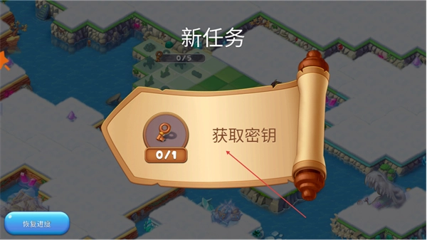 5、接取获取密钥新任务,明确需收集1个密钥的目标。