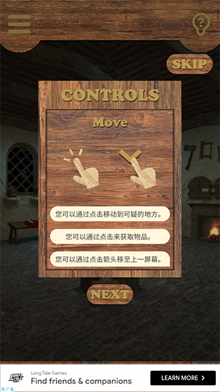 2、可以通过点击来获取物品或是移动到可疑的地方,点击屏幕底部的箭头可移至上一个屏幕。