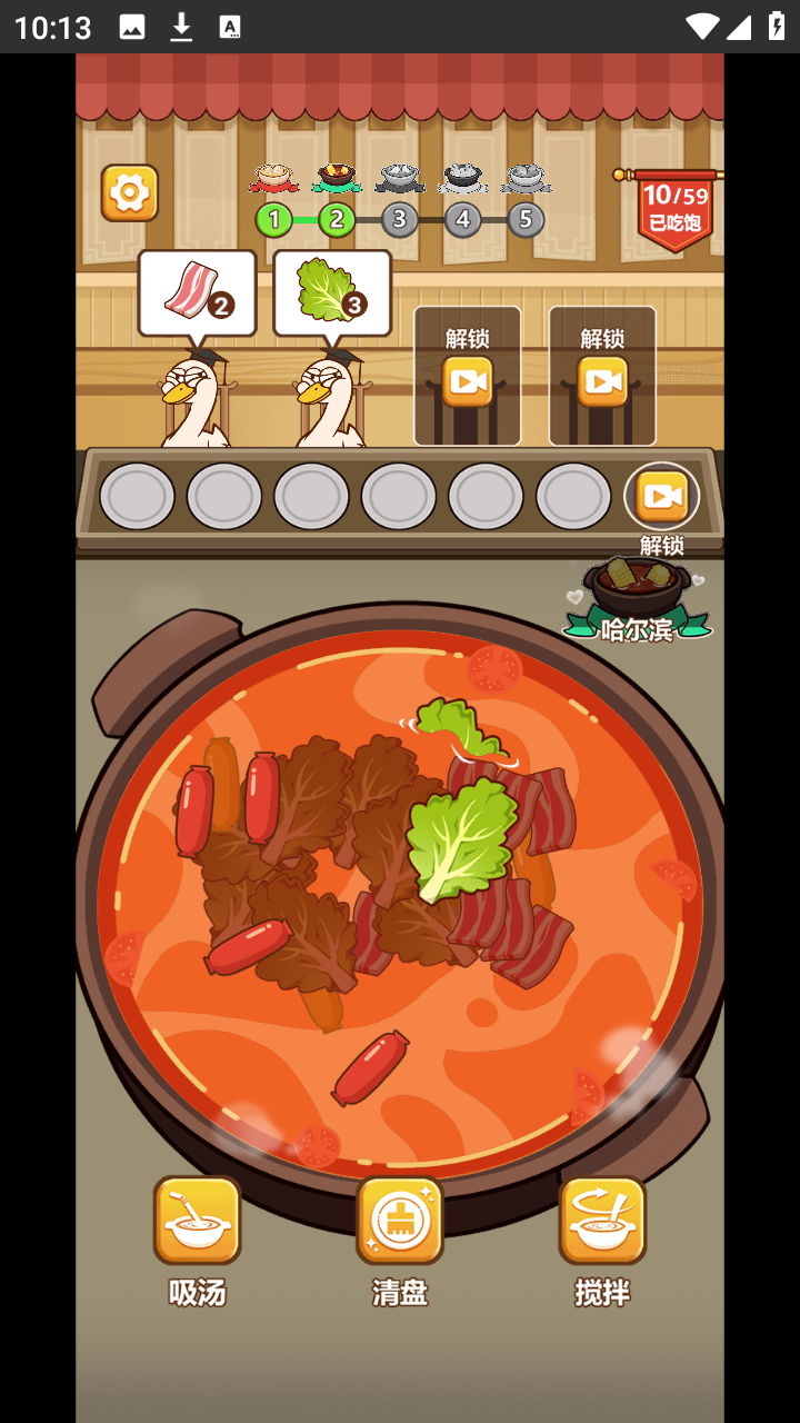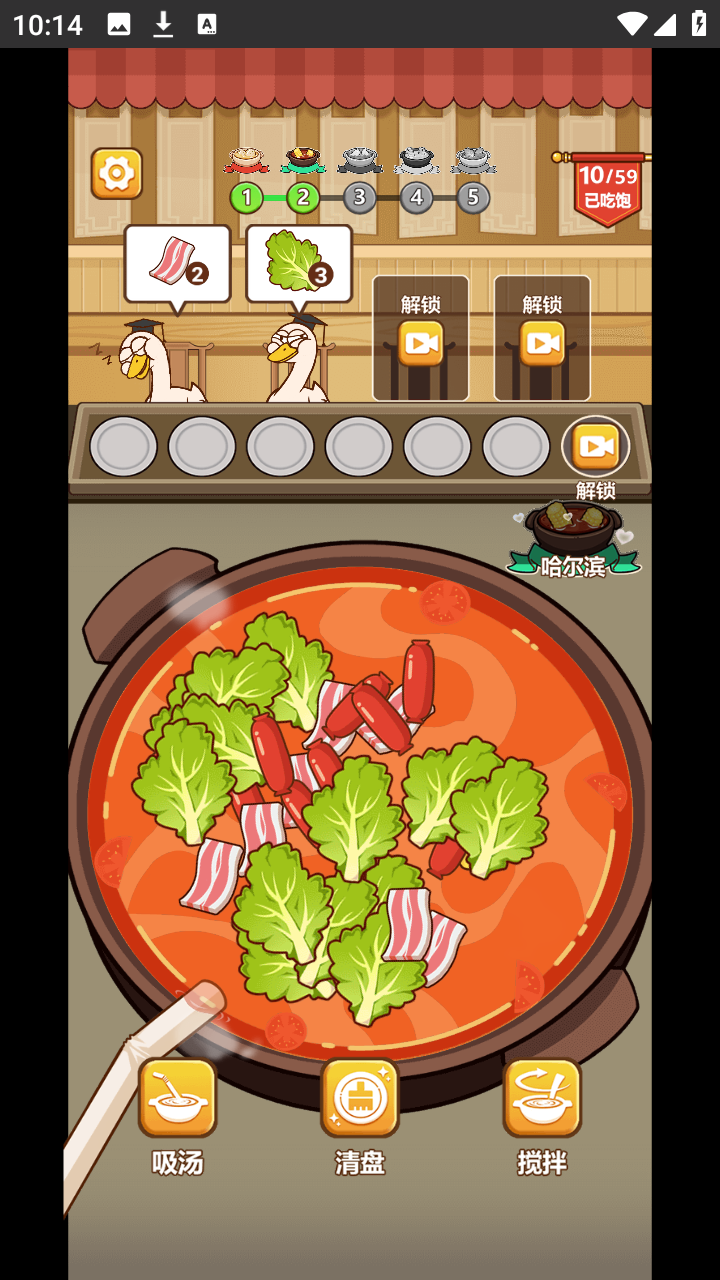 3、将锅里的食材清空就闯关成功了。