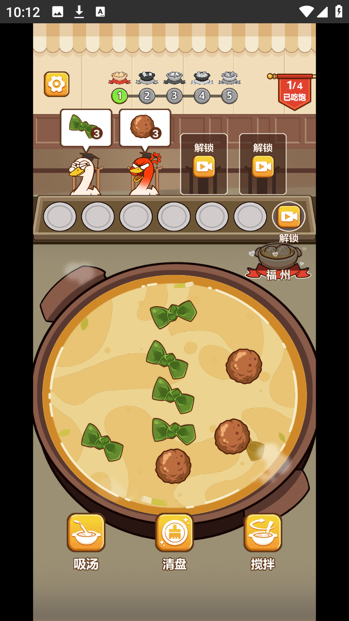 脑洞解压馆是一款融合了脑洞解谜元素的闯关游戏。玩家可以在游戏中完成美食制作的游戏挑战,你需要将汤锅中的食材进行分配和搅拌以及烹制,并为顾客给出满意的菜肴来完成游戏中的挑战,游戏采用三消的玩法,只需要点击食材将其捞至备餐区,凑齐三份即可形成一份食材,完成客户的需求,每个顾客都有不同的需求,游戏设置了很多不同的关卡可供玩家开展挑战,让你可以自由游玩游戏。