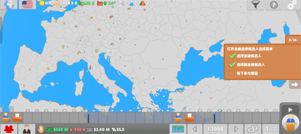 玩家可在总统制或半总统制国家竞选最高领导职位,亦可在议会制国家出任总理。政府既可单独执政,也可通过多党联合维系统治稳定。面对不信任投票时需谨慎应对,必要时甚至可以绕开议会推进决策,但由此带来的政治风险不可忽视。