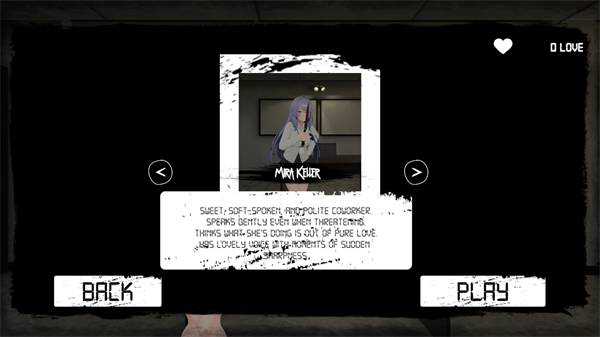 病娇女孩可爱的二次元美少女角色形象结合让人害怕的病娇性格,让玩家在黑暗压抑的环境中感受十足的恐惧,在病娇女孩的抓捕中体验一场令人心惊肉跳逃脱旅程,收获在办公室内和病娇女孩周旋并逃脱所带来的刺激感受。剧情悬疑紧凑,病娇角色塑造鲜活,压迫感拉满,场景氛围与音效惊悚到位,追逐战紧张刺激,解谜设计巧妙,多结局玩法耐玩,操作顺手优化稳定不卡顿,感受刺激的逃脱之旅!