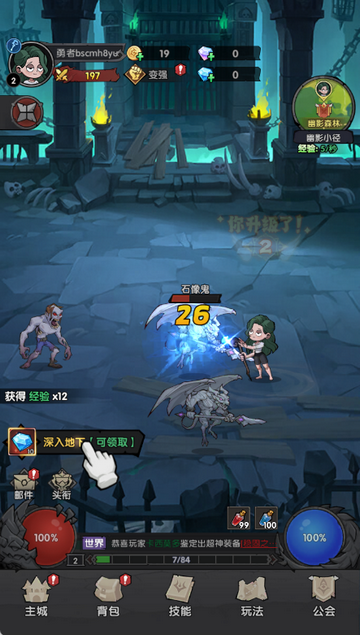 3、攻击面前的怪物,领取奖励