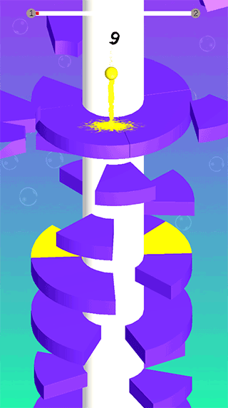 游戏中你需要不断的转动环形塔,让小球以最佳、最有力的角度击碎一层的板材;