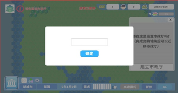 3、接管土地时,这里仍是一片空白世界,首先需要为城市设定一个名称。