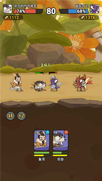 6、玩家可以进行远近搭配,游戏中的战斗使用击退效果的,当敌人远程攻击较多,可以尝试提升前排肉度和后排输出,因为极兔效果,前排武将可能无法靠近敌人。