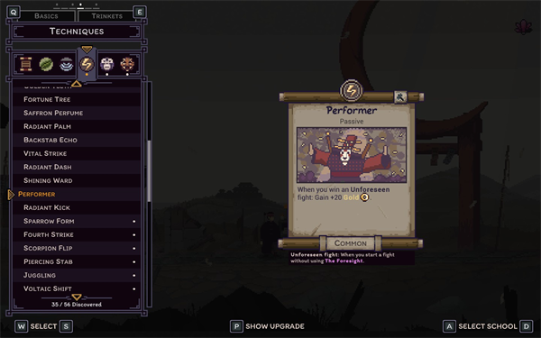 例如,下面图片中的升级表面上看似简单且弱小,但实际上它多次救了我命,因为武器能让你有机会格挡任何来袭攻击。这很有效,因为最后存活的敌人可以获得彻底扭转局势的增益。