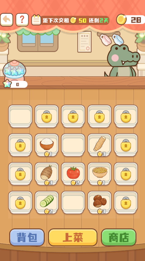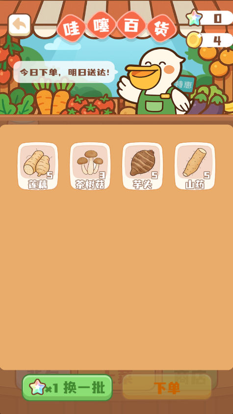 4、点击商店可以消耗金币购买新的食材,商店里的货物只有全部购买完毕后才会刷新。