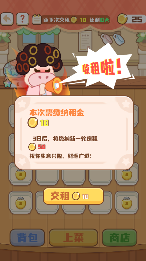 6、每过一定天数就需要交租,如果无法交租就会重新开始。