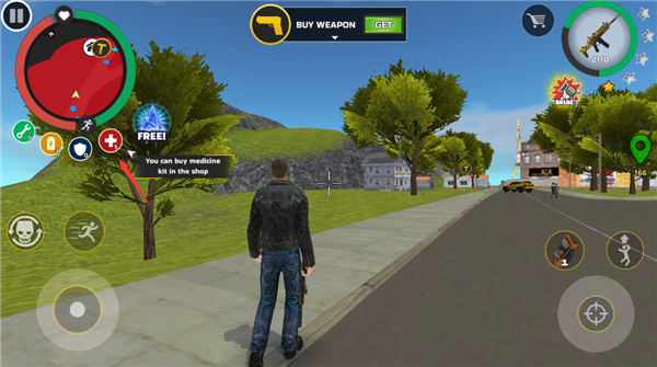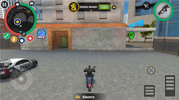 3、点击左上角的商店图标,你可以在这里购买各种物品,像摩托车这样的载具将会出现在你的身旁。