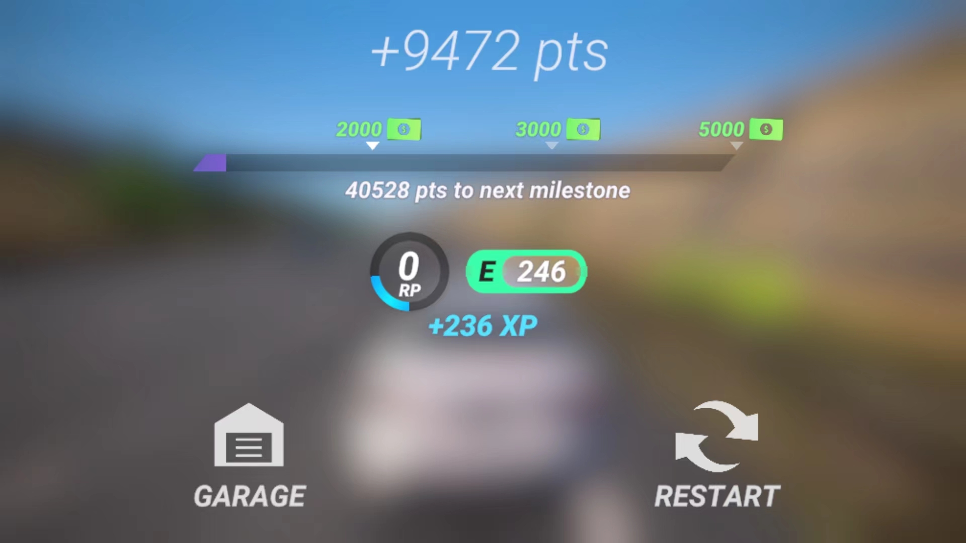 9、比赛结束后,可看到相关的数据和获得经验奖励,以上就是无尽高速赛车游戏的玩法了。