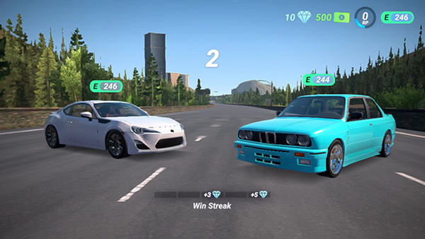 实时对战:玩家匹配对手,在高速公路上展开竞速对决。