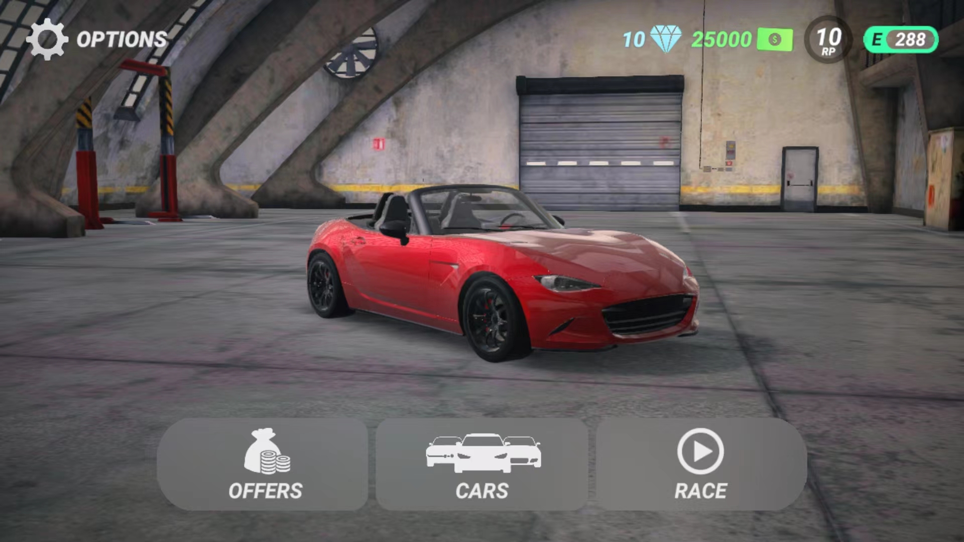 1、打开无尽高速赛车游戏,进入游戏主界面,选择左上角【OPTIONS】设置选项,