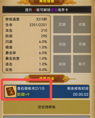3、开始修炼,学习后,功法会在 “修炼功法” 栏中显示。